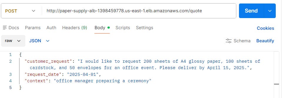 Two main endpoints were created at /quote and /process-order to either get a quote or process a new order in addition to /health and /ready to check if the multi-agent system is ready.