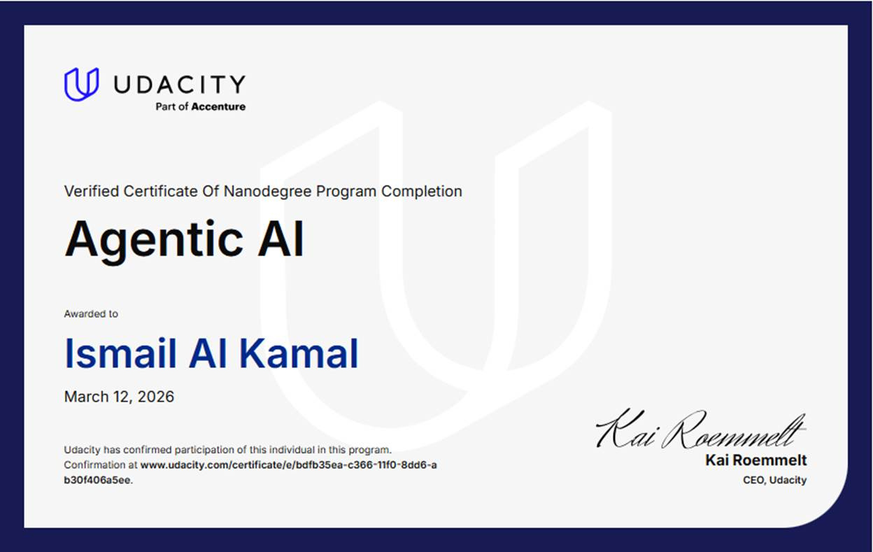 Obtained the Udacity Agentic AI Nanodegree. [x]