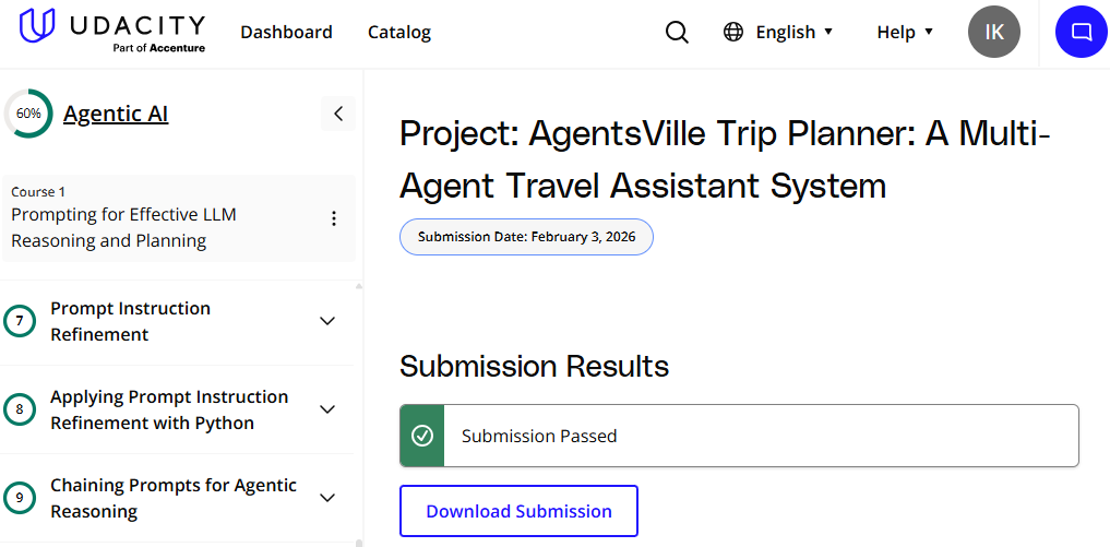 Obtained the Udacity Agentic AI Nanodegree.