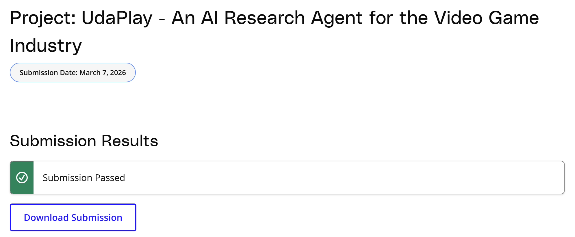 I successfully completed Course #1 and passed the first project.One thing I really like about Udacity is that their projects are reviewed by humans to provide detailed feedback and code reviews (don’t know if they’re still using humans or have shifted to AI grading after the Accenture acquisition).