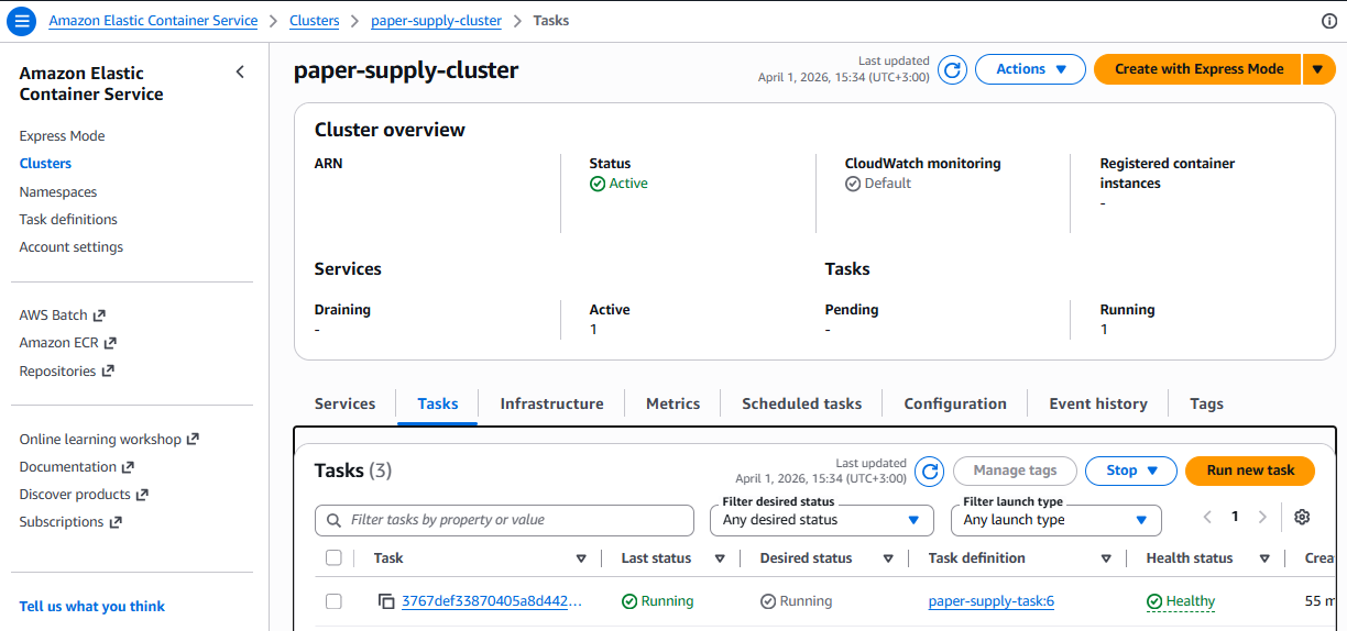 Create a running container from the stored image in ECS (Amazon Elastic Container Service)
