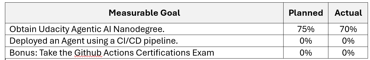 I’m working on refining the AI system architecture for better use of short and long term memory as well as vector databases for Retrieval Augmented Generation (RAG). Therefore, I’ve identified the Udacity Agentic AI course as the source for my learning throughout the next 13 weeks.